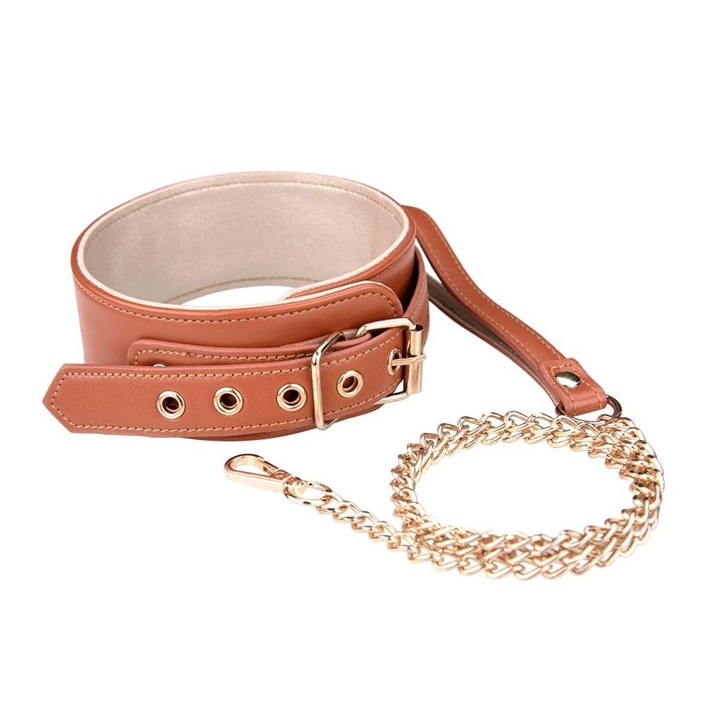 Nastavitelný obojek s odepínatelným vodítkem ve stylové barvě koňaku.
