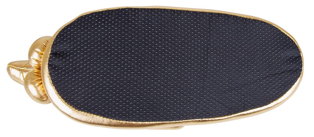 Zlaté pantofle z měkkého materiálu s penisem a varlaty na špičce každého pantofle. Standardní velikost: cca 37 až 43. Materiál: svrchní část 100 % polyester, podšívka 100 % polypropylen.