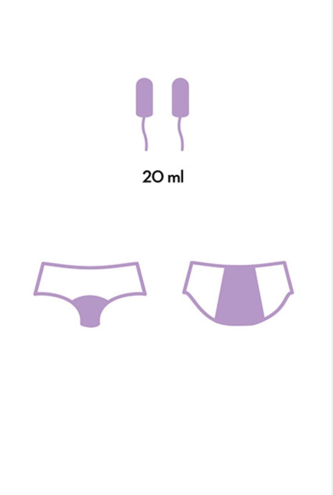 vnější 95% viskóza/5% elastan, vnitřní vrstvy 80% polyester/20% nylon a rozkrok 95% bavlna/5% elastan. Jeho absorpční kapacita je 20 ml.