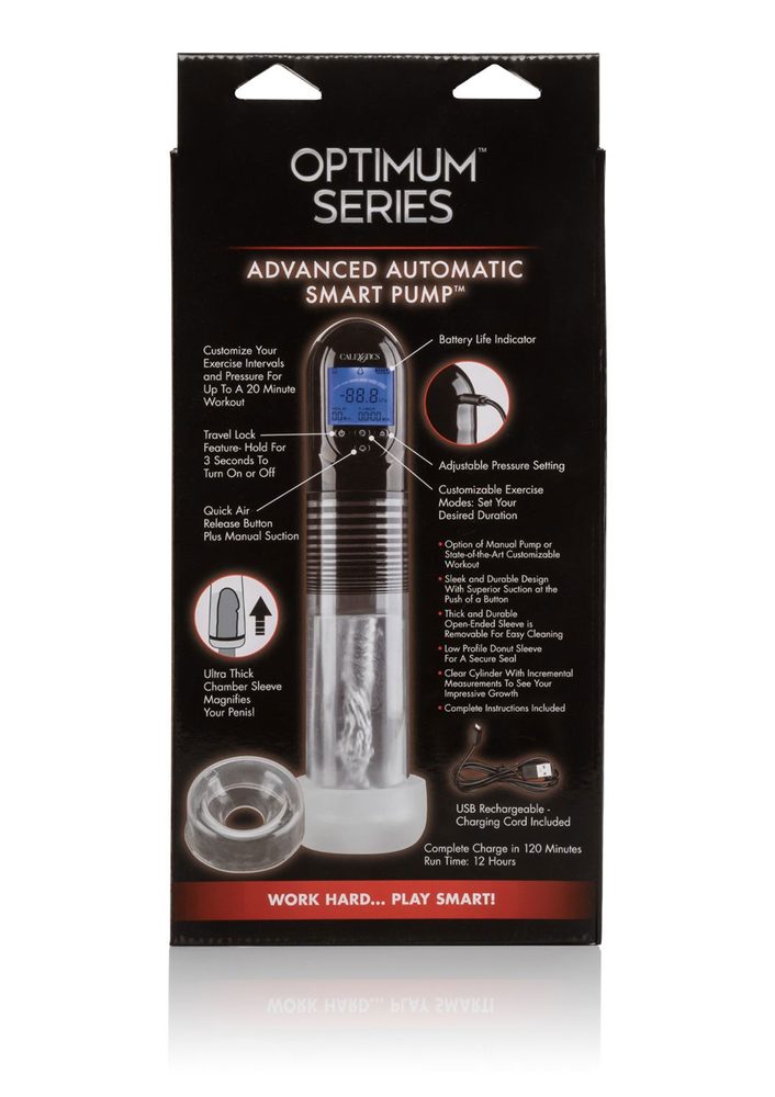 Maximalizujte svůj nástroj pro potěšení s pokročilou automatickou inteligentní pumpou Optimum Series od značky CalExotics. Elegantní a odolná pumpa na penis vyrobena pro vynikající sání a zvýšení výkonu. Zvyšte vytrvalost, vylepšete výdrž a zesilte svůj penis s touto řadou přizpůsobitelných cvičebních režimů.