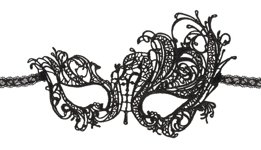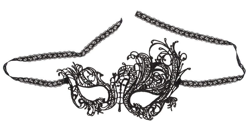 Perfektní doplněk na kostýmní večírek nebo podobné příležitosti. Vyrobeno z asymetrické výšivky, se stuhou z krajky na zadní straně, kterou lze zavázat pro dokonalé přizpůsobení.
