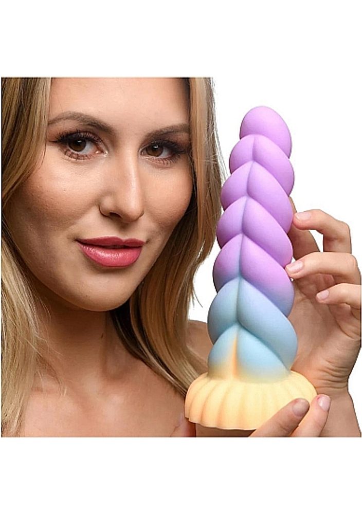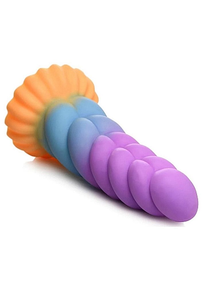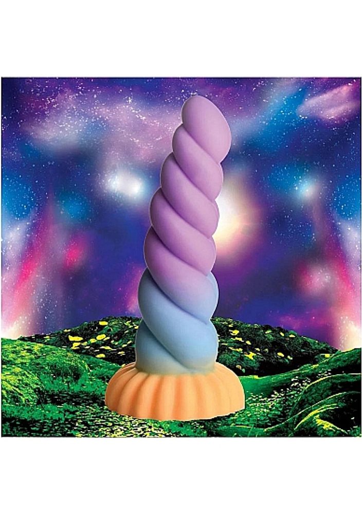 Odvážil se sestoupit ze zakázaných lesů, pozor, přichází Jednorožec, který vypadá, že splní vaše nejfantastičtější touhy! To je dildo od Creature Cocks. Skryté v lesích klusá majestátní zvíře, které přišlo proniknout do vaší mystické zahrady! S jeho dlouhým, tlustým, magickým rohem vyzařujícím oranžové, modré a fialové odstíny, které se kroutí dohromady ve víření, ucítíte každou křivku a příraz.