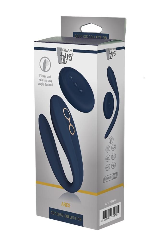 Ares je ohýbatelný párový vibrátor, který si zachová svou ohnutou polohu. Proto se dá velmi přesně přizpůsobit preferencím uživatele a dokáže poskytnout pokaždé jiné potěšení. Pro snadné použití je Ares dodáván s bezdrátovým dálkovým ovládáním. Tento všestranný vibrátor má 2 motory, jeden ve špičce a jeden v základně, které mohou pracovat současně nebo samostatně a nabízí 7 vzorů vášně a 3 rychlosti. Může být použit jako vkládací vibrátor nebo jako stimulátor klitorisu nebo obojí současně. Skvělé pro sólovou hru, skvělé pro páry! Stejně jako ostatní hračky z kolekce Goddess, Ares poskytne intenzivní potěšení z nádherného luxusu!
