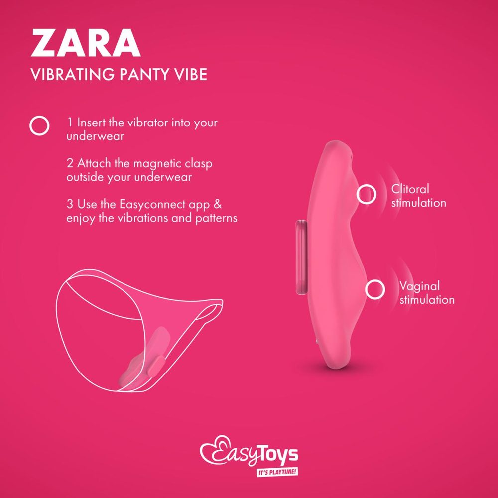 Objevte diskrétní potěšení, které vám může nabídnout vibrátor do kalhotek Zara od značky EasyConnect. Tato hračka je navržena pro ženy, které berou své potěšení vážně, ať už jste doma nebo na cestách. Ovládejte hračku sami nebo její ovládání předejte. Nechte svého partnera převzít kontrolu bez ohledu na vzdálenosti, s možností ovládat vibrace na dálku prostřednictvím Long Range Play! Tato funkce překlenuje propast mezi vámi a vaším partnerem, ať jste kdekoli na světě. Je ideální pro páry, které jsou ve vztahu na dálku nebo když chtějí zkusit něco nového a vzrušujícího. Sdílením jedinečného odkazu může váš partner ovládat vaši hračku na dálku a mít kontrolu nad vaším potěšením. Nechte se potěšit!