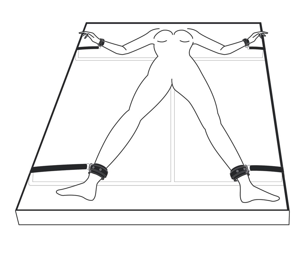 Aplikace je velmi snadná! Jednoduše protáhněte popruhy pod Vaší matrací, nastavte správnou délku a pouta nasaďte partnerovi.