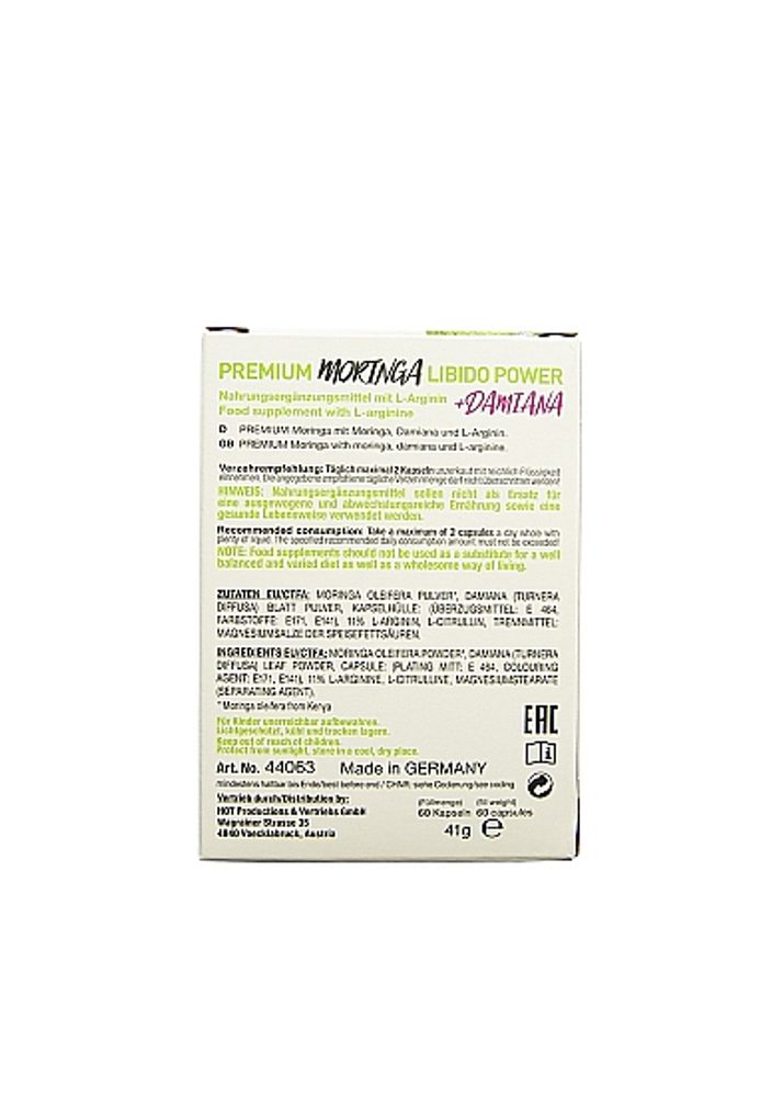 Přírodní síla ze stromu Moringa od značky HOT. Silný imunitní systém zvýší vaše libido. PREMIUM Moringa s moringou, damianou a L-argininem. Vyrobeno v Německu. 60 tabletek. Doplněk stravy pro ženy.