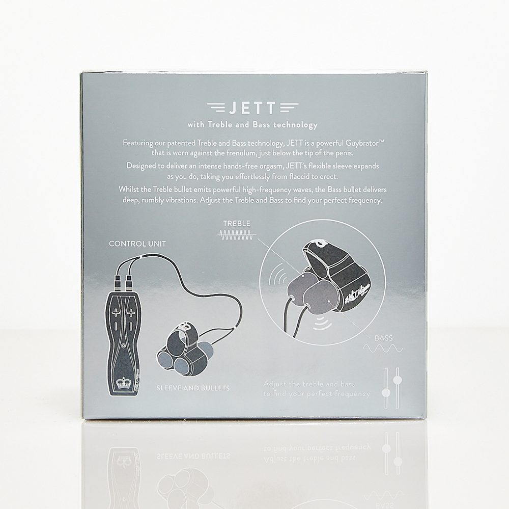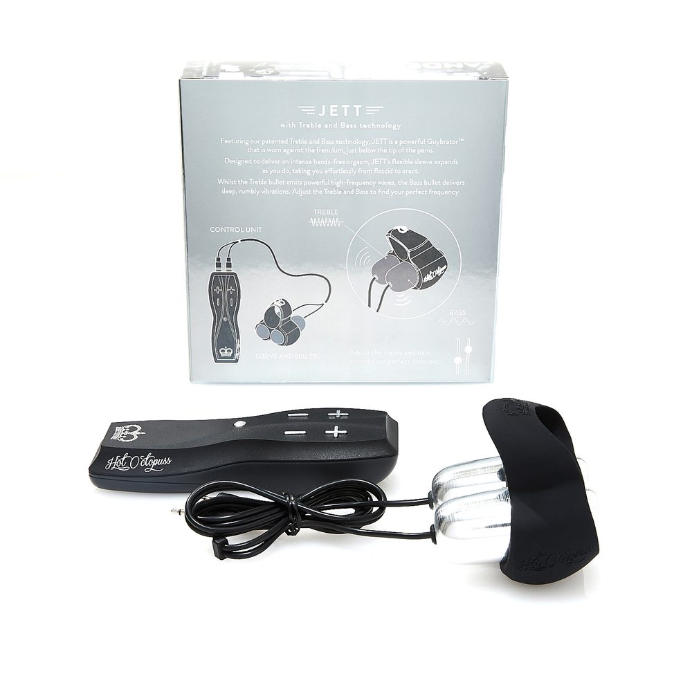 Hot Octopuss vyvinuli svůj první vibro erekční kroužek JETT, který se nosí přímo u uzdičky, těsně pod špičkou penisu. Jeho inovativní technologie výšek a basů ho stimuluje kontrastními frekvenčními vlnami. Za tímto účelem je JETT vybaven 2 odnímatelnými vibrokulkami s různě velkými motory: Vysokofrekvenční kulka vytváří vysokofrekvenční vibrace, zatímco basová kulka poskytuje nízkofrekvenční vibrace. Intenzita je samostatně nastavitelná pomocí kabelového ovladače. Kromě toho má JETT 5 režimů intenzivních vibrací, které nabízejí jedinečné vibrační rytmy s vysokými a nízkými frekvencemi s proměnlivou intenzitou. JETT je příjemně flexibilní a zároveň poskytuje těsné přizpůsobení pro intenzivní a příjemnou stimulaci bez použití rukou.