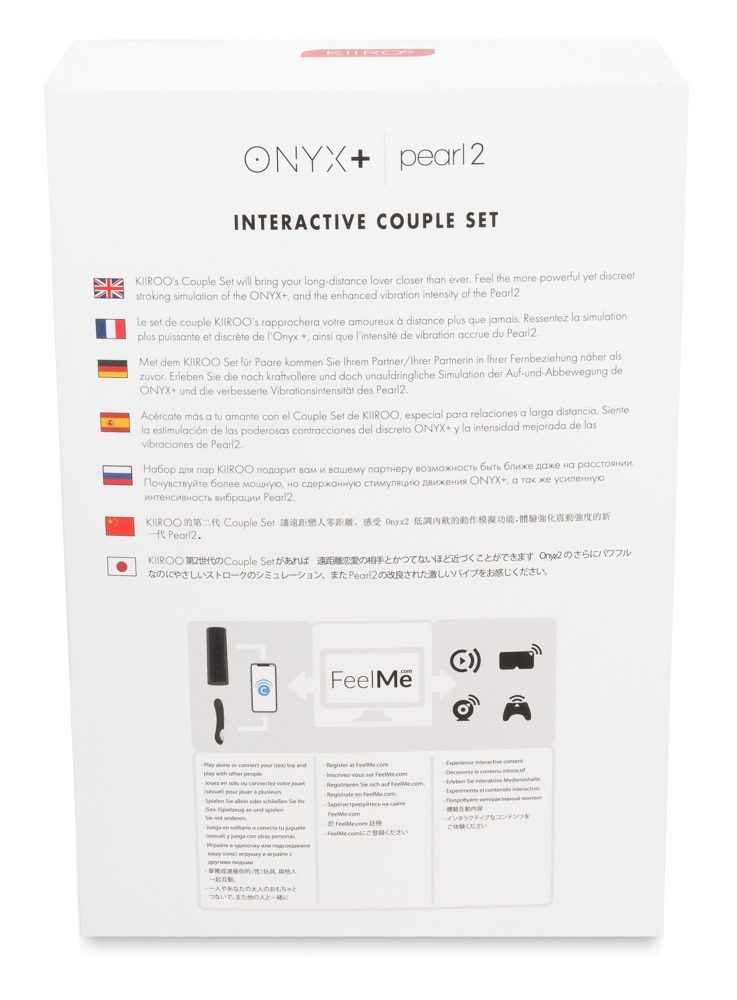 Kiiroo Onyx přináší do internetu absolutně nový zážitek – intimní dotyk. Ve vnitřní vagíně Onyx je 10 stahujích kroužků, které spolupracují a tím poskytují pocit reálného sexuálního styku. Každý Onyx je schopný se připojit s Kiiroo Pearl, nebo s jiným zařízením Kiiroo Onyx a získavat data i z těchto zařízení. Zapojte Pearl na nabijení a počkejte dokud zhasne indiktátor zobrazující úplné nabití ( cca 2 hodiny). Po plném nabití je vibrátor Pearl připraven k akci. Po použití s partnerem zapněte svůj