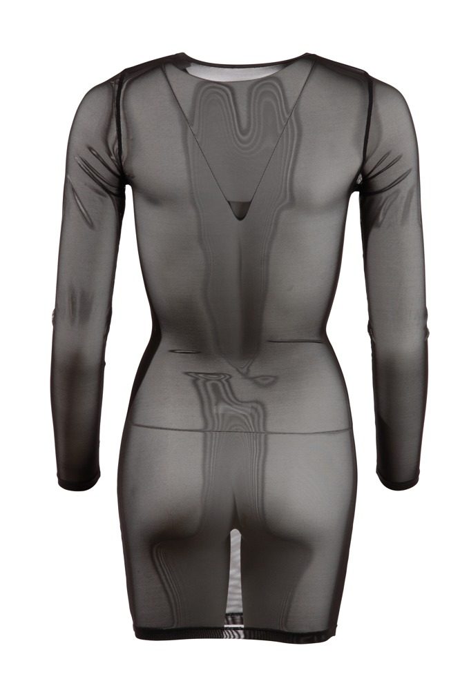 Odhalte svou smyslnost v šatech, které jsou rafinovanější než samotná nahota. Přiléhavý střih z jemné průhledné síťoviny se stane vaší druhou kůží, dokonale obepne křivky a nechá vyniknout vaši přirozenou krásu. Dlouhé rukávy a kulatý výstřih dodávají šatům nádech elegance, zatímco absence spodního prádla jen podtrhne jejich dráždivý efekt.