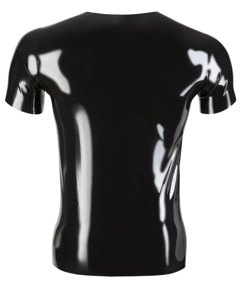 Late. X Shirt Černé unisexové latexové triko od značky Late. X s rovným střihem s krátkými rukávy a kulatým výstřihem.  Vyrobeno z lesklého latexu (tloušťka: 0,4 mm) Klasický tvar s kulatým výstřihem Dá se nosit k různým outfitům Latex vyrobený…