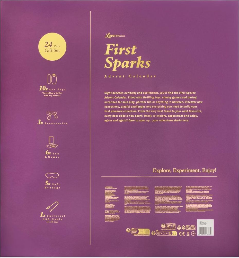 Adventní kalendář Loveboxxx First Sparks je ideální volbou pro všechny, kteří chtějí s hravostí a lehkostí objevovat svět erotických hraček. Je cenově dostupný a umožňuje krok za krokem poznávat nové zážitky bez zbytečného stresu. Každý den otevřete nové okénko s překvapením – od vzrušujících hraček až po odvážné hry a úkoly. Postupně si tak vytvoříte vlastní sbírku potěšení, která poroste spolu s vaší zvědavostí.