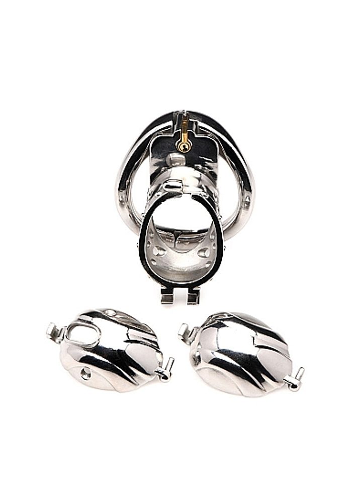 Mějte svou submisivní čubičku pod kontrolou s touto vzrušující klecí cudnosti od Master Series. Odolná klec má pohodlný a bezpečný design, je lehká a hypoalergenní a poskytuje optimální ventilaci pro vaši hygienu. Klec na penis je dodávána se 2 různými velikostmi kroužků a 2 různými ventily, takže si můžete přizpůsobit své individuální velikosti. Sada obsahuje náhradní klíče. Klec na penis vám zabrání dotknout se sebe a poskytuje maximální kontrolu nad vámi. Materiál je odolný proti korozi a snadno se čistí teplou vodou a čističem hraček. Klec na penis lze použít s jakýmkoliv typem lubrikantu.