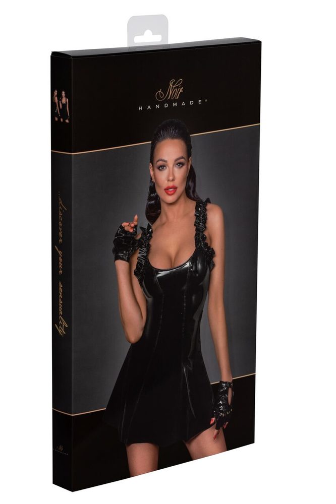 Noir Handmade F248 Short PVC Dress with Frilled Shoulder Straps