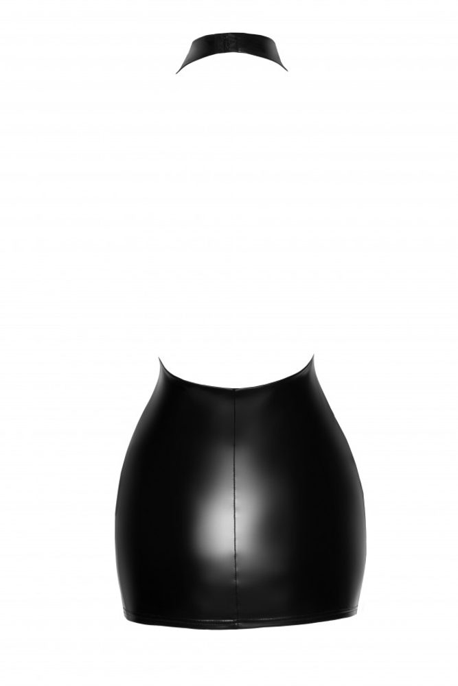 Tyto riskantní krátké šaty mají krajkový hrudník a sametová ramínka, jsou vyrobeny z našeho charakteristického materiálu powerwetlook. Pro snadný přístup je vpředu zakončena dvoucestným černým zipem