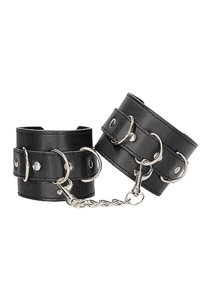 Kožená pouta od Ouch! s nastavitelnými řemínky a řetízkem s karabinami jsou vhodné na pevné spoutání zápěstí nebo kotníků. Pouta jsou bezpečné a zároveň velmi pohodlné, s elegantním prošíváním po obvodu celé délky.