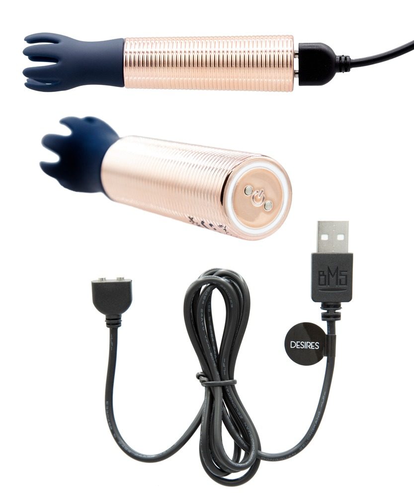 Desires od Pillow Talk ze série Secrets je kompaktní vibrátor s 5 různými, snadno vyměnitelnými nástavci pro všestrannou stimulaci na těle i v těle. Sametová textura Soft Touch poskytuje velmi příjemný pocit na pokožce při stimulaci a hře. Vícerychlostní vibrace se navíc snadno ovládají a díky vodotěsnému provedení poskytují rozmanité potěšení – dokonce i pod vodou. Včetně úložného vaku. Dobíjecí přes USB nabíjecí kabelcje součástí balení.