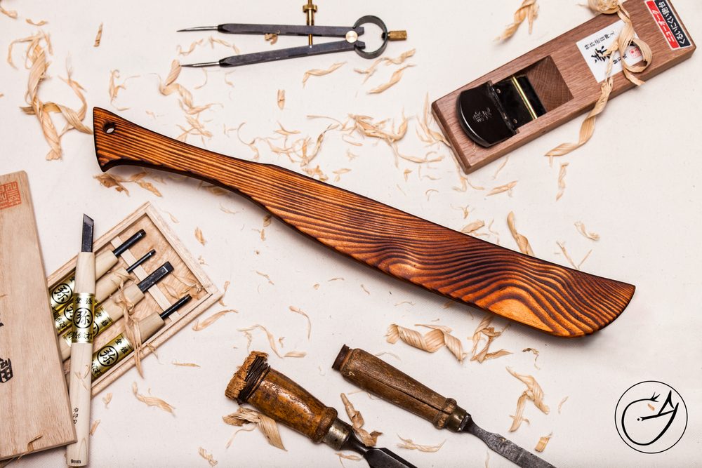 Plácačka je vyrobena a zdobena starodávnou japonskou metodou Shou Sugi ban.