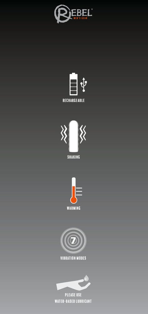 Vyměňte Vaši obyčejnou masturbaci za excelentní masturbaci! Tři funkce, které si nebudete chtít nechat ujít! Masturbátor se 3 funkcemi od značky Rebel Mens Gear má vibrace, funkci zahřívání a pohyb nahoru a dolů.