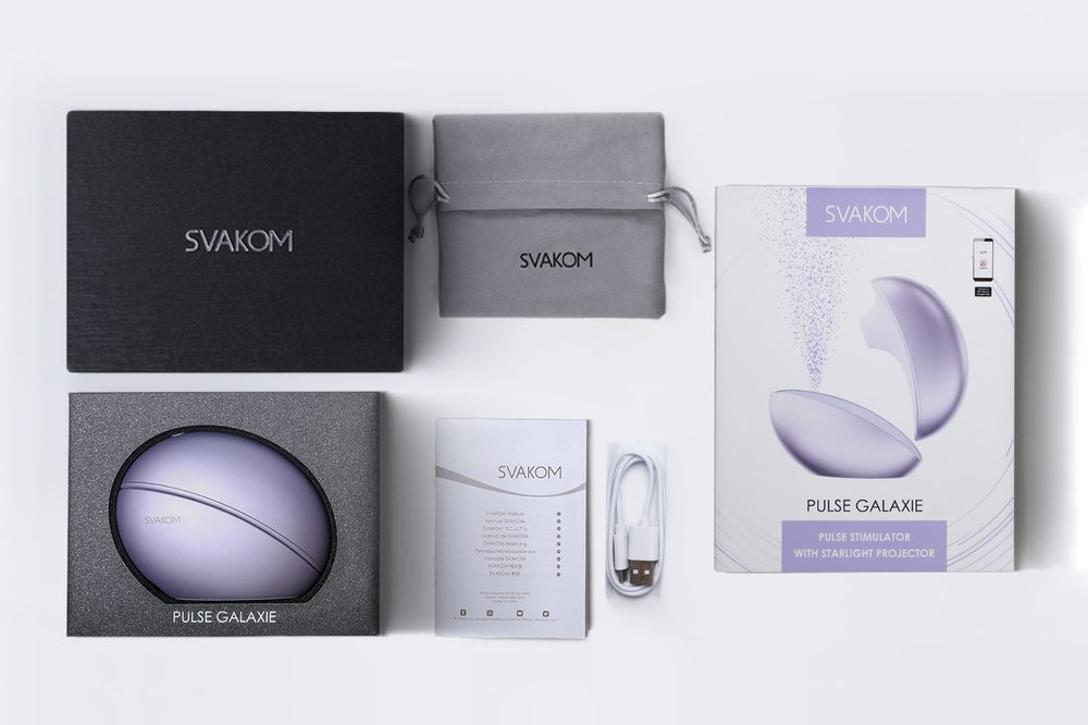 Objevte nové senzacePulse Galaxie využívá Pulse Technology™ od SVAKOM, která funguje jako píst auta, tlačí a táh Svakom Pulse Galaxie LilacSvakom Pulse Galaxie Lilac je pulzující vibrátor, který stimuluje klitoris a doslova vás přenese do jiné galaxie. Je to skvělý doplněk, který vás vezme do světa potěšení a zkoumání vaší sexuality. Objevte nové, neuvěřitelné pocity s technologií Pulse. Funguje tak, že tlačí a vytahuje vzduch, čímž vytváří 5 různých režimů sání a intenzity, které stimulují klitoris. Když je Pulse Galaxie mimo nabíjecí stanici, na strop se promítá hvězdná obloha ve 3 různých tvarech. Režim světelné projekce je další funkcí nebo estetickým doplňkem, který doplňuje váš sexuální zážitek vytvořením relaxační a intimní atmosféry v ložnici. Slouží jako dodatečná vizuální stimulace, která vám umožní jít ještě hlouběji do vašich fantazií. Když ale vložíte Pulse Galaxie zpět do pouzdra a obě poloviny se spojí, jeho oválný tvar vytvoří elegantní domácí dekoraci. Galaxie má 5 typů a úrovní sání, což umožňuje upravit úroveň stimulace podle vašeho vkusu, a 3 světelné režimy, které stimulátor promítá na stěnu nebo strop, což zážitek jen umocňuje.