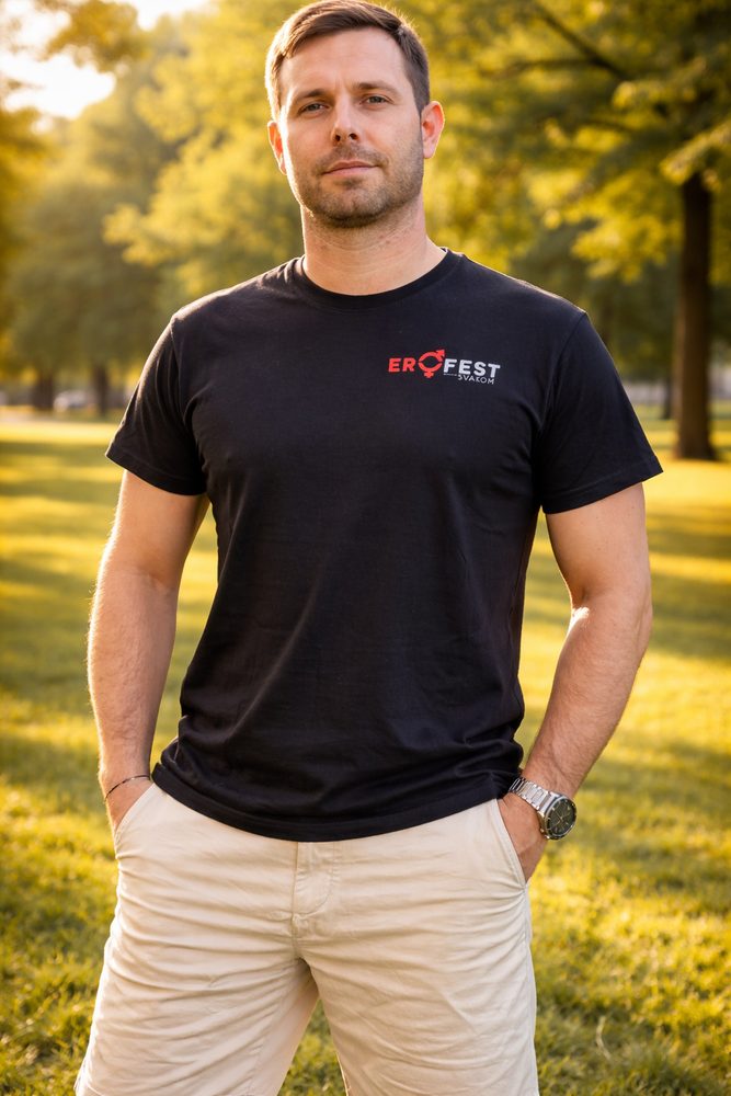 Erofest Limited Edition: Pánské černé triko Tohle není jen další triko ve skříni. Pánská varianta z limitované edice Erofest je statement kousek pro ty, co se nebojí vystoupit z davu. Navrženo přímo pro legendární erotický…