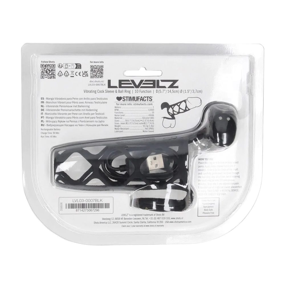 Posuňte své zážitky na vyšší úroveň s vibračním návlekem z prémiové kolekce LEVELZ. Tento Level 3 návlek z pružného silikonu pevně obejme penis i varlata, čímž poskytuje podporu a prodlužuje výdrž. Silný vibrační motor je umístěn pro cílenou stimulaci, která přidává intenzitu jak při sólo hrátkách, tak při společných hrách.
