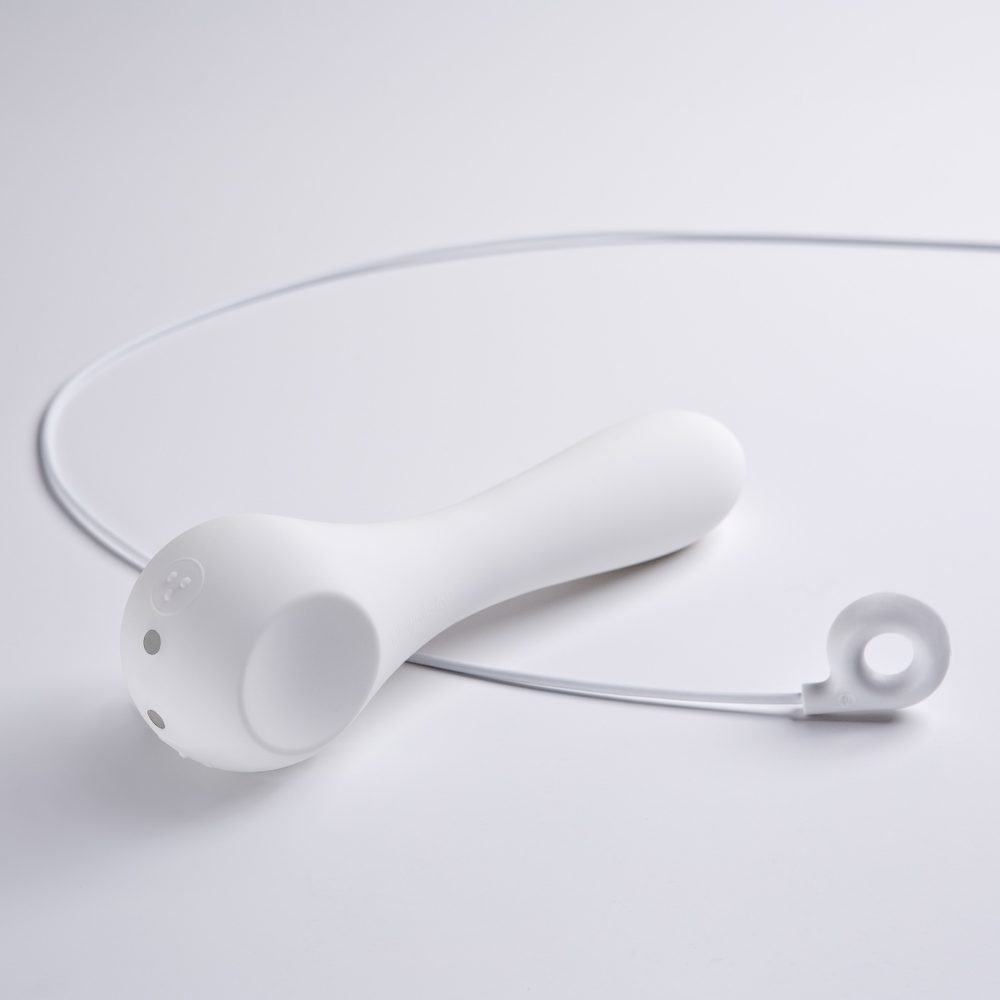 - Vibrátor se ovládá pomocí dvou tlačítek, která jsou inspirována Braillovým písmem. Mají na sobě drobné výčnělky, na jednom tlačítku tři (···), na druhém jeden (·). Díky nim můžete vibrátor ovládat velmi intuitivně i se zavřenýma očima, protože vaše prsty vždy tlačítka od sebe rozenají a vědí, kterým přidávat na intenzitě a kterým ubírat. Zmáčknutím obou tlačítek najedou vibrátor zapnete, stejným způsobem i vypnete.