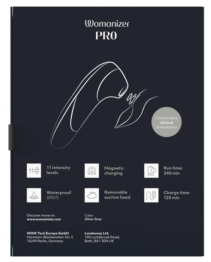Womanizer Pro pulzátor na klitoris – stříbrná