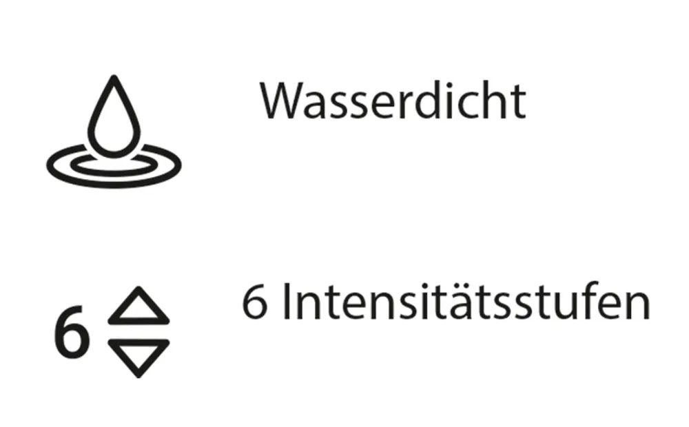 6 různých intenzit: tichý šepot! Pohodlně ovladatelné nahoru a dolů stisknutím tlačítka (+/-).