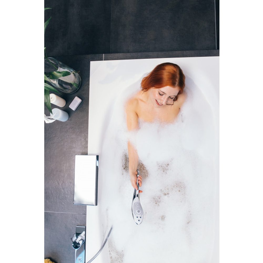 Je to vůbec první kombinovaná sprchová hlavice a vodní masážní stimulátor klitorisu, který spojuje odborné znalosti koupelnových expertů Hansgrohe a lídrů v oblasti potěšení Womanizer.