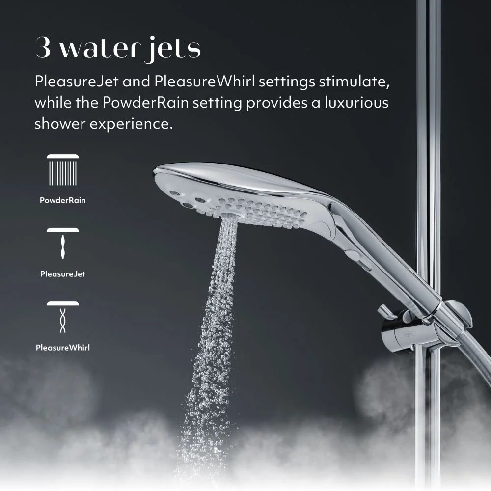 Přepínejte mezi nastavením PowderRain pro luxusní sprchu, až po smyslnou masáž s PleasureWhirl a silnou pulzací s PleasureJet.